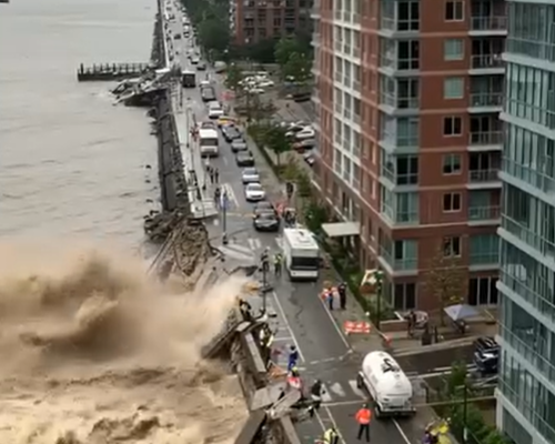 In several videos, buildings can be seen leaning precariously before sliding into fast-moving waters. Emergency crews are visible nearby, working to secure the surrounding area and prevent additional collapses.
